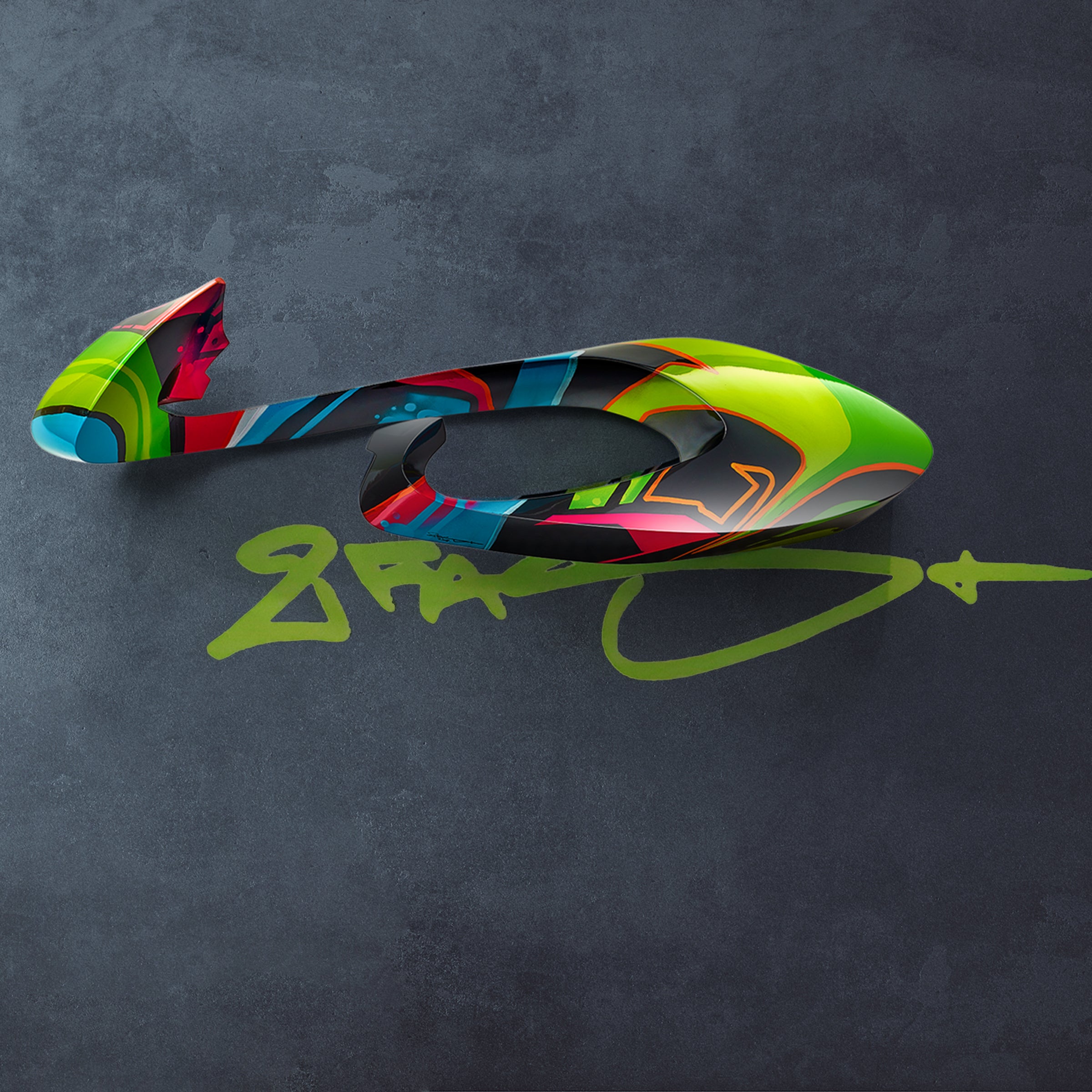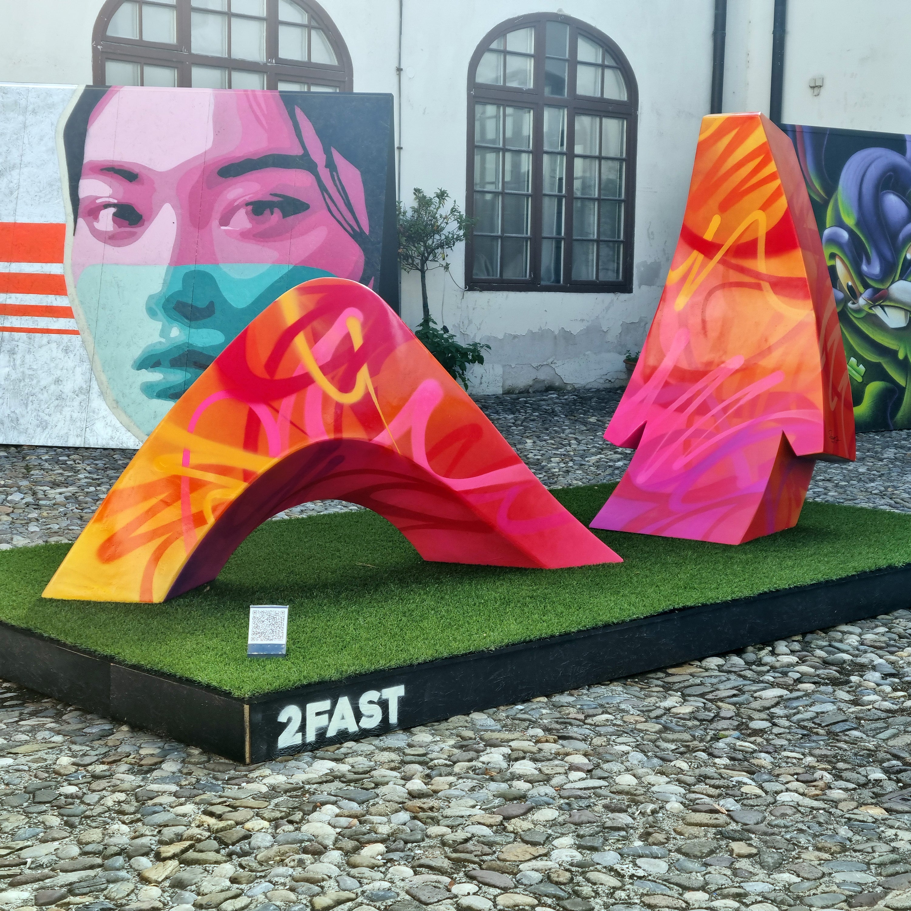 A 4×2×2 m graffiti sculpture breaking free from the wall.